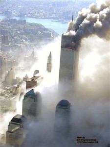 In this Sept. 11, 2001 photo made the the New York City Police Department and provided by ABC News, Tuesday Feb. 9, 2010 the upper floors of the World Trade Center tower burns after terrorists flew an airliner into it. (AP Photo/NYPD, via ABC News, Det. Greg Semendinger ) MANDATORY CREDIT