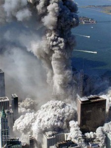 In this Sept. 11, 2001 photo made by the New York City Police Department and provided by ABC News, Tuesday Feb. 9, 2010 a World Trade Center tower implodes in New York, after terrorists flew two airliners into the towers. (AP Photo/NYPD, via ABC News, Det. Greg Semendinger ) MANDATORY CREDIT